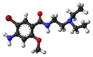 Bromoprida este un medicament utilizat ca antiemetic și prokinetic, fiind foarte similar din punct de vedere structural cu metoclopramida (conține un atom de brom în locul celui de clor).[10] Căile de administrare disponibile sunt: orală, intravenoasă și intramusculară.