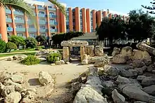 În faza Tarxien (3150-2500 î.Hr.) a preistoriei malteze a fost construit un mic templu pe locul actualului oraș Buġibba. Templul a fost descoperit în anii 1920 de arheologul maltez Themistocles Zammit și dezgropat în 1928 de Zammit și L. J. Upton Way,[2] iar acum este situat pe terenul Hotelului Dolmen.[3] Aceste ruine au fost incluse în Lista antichităților malteze din 1925, ca „ruinele megalitice aflate de-a lungul drumului către Qawra”.[4] Alte cercetări arheologice au fost efectuate la începutul anilor 1950, când au fost descoperite obiecte din ceramică datând din aceeași perioadă.[5]