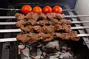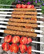 În Iran, kebaburile sunt servite fie cu orez, fie cu pâine . Un fel de mâncare de orez alb chelow cu kebab se numește chelow kabab, care este considerat felul de mâncare național al Iranului. Orezul poate fi, de asemenea, preparat folosind metoda kateh și, prin urmare, felul de mâncare s-ar numi kateh kabab .
