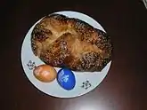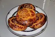 - Tales of a Kitchen (). „Persian date bread with turmeric and cumin (Komaj)”. Arhivat din original la . Accesat în .