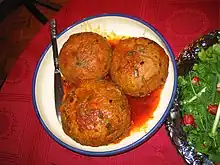 | <i id="mwcQ">Polow</i> și chelow | Chelow este orez simplu servit împreună cu o mâncare cu sos sau cu kebab, în timp ce polow este orez amestecat cu altceva. Sunt, totuși, gătite în același mod. Orezul se prepară prin înmuiere în apă sărată și apoi fierbere. Orezul fiert (numit chelow) este scurs și turnat din nou în oală pentru a fi lăsat la abur. Această metodă are ca rezultat un orez foarte pufos, cu boabele de orez separate și nelipicioase. O crustă aurie numită tadig, este creată în partea de jos a vasului folosind un strat subțire de pâine sau felii de cartofi. Adesea, tadigul este servit simplu cu doar o crustă de orez. Carnea, legumele, nucile și fructele sunt uneori adăugate în straturi sau amestecate cu chelow și apoi lăsate la abur. Chelow-ul se pune în oală, și se reduce flacăra; o cârpă groasă sau un prosop este plasat sub capacul oalei pentru a absorbi excesul de abur. |