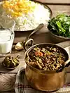 Khoresh este o formă iraniană de mâncare cu sos sau tocană, care esteeste servită de obicei cu o garnitură de orez alb. Un khoresh constă de obicei din ierburi, fructe și bucăți de carne, aromate cu pastă de roșii, șofran și suc de rodie . Alt tip de tocană este dizi, care se servește cu pâineîn loc de orez.
