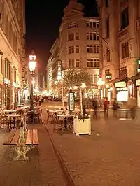 ![]() Podul cu lanțuri noaptea, în fundal Palatul Budei | |||