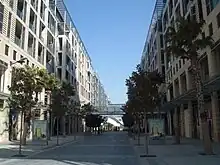 Dezvoltarea constă dintr-o bandă pietonală înconjurată de douăsprezece clădiri cu 6 etaje; dintre care 4 sunt birouri și 8 sunt rezidențiale. 398 de garsoniere și apartamente din clădiri rezidențiale sunt administrate de Rotana Arjaan.[3][4] Unitățile de vânzare cu amănuntul și restaurantele sunt situate la nivelul solului, în timp ce acoperișurile sunt dedicate cluburilor și restaurantelor.[5][6]