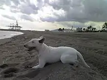 Bull Terrier este o rasă de câini de talie medie, cu corp scund și musculos. Exemplare din această rasă au fost folosite în secolul al XIX-lea în luptele cu taurii. La baza rasei Bull Terrier se află Old English Terrier (un câine care era mult mai mare decât actualul Bull Terrier). Blana este scurtă și aplatizată pe forma corpului, de diferite culori. Înălțimea la greabăn este între 45 și 50 cm, iar greutatea între 25 și 33 kg. În 1936, s-a hotărât că Bull Terrier-ul alb și cel colorat să fie considerați varietăți distincte ale aceleași rase. La început Bull Terrierul complet Alb a fost cunoscut ca și White Cavalier (Cavalerul Alb) și a fost câinele de pază preferat de familiile regale.