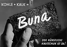Denumirea Buna a fost folosită pentru produs, procesul de producție și companie (VEB Chemische Werke Buna), tehnologia fiind dezvoltată de I. G. Farbenindustrie din Leverkusen la sfârșitul anilor 1920. Procedeul constă în polimerizarea butadienei în prezența catalizatorului de sodiu metalic. Denumirile copolimerilor erau: Buna S pentru cauciucul butadien-stirenic și Buna N pentru cel butadien-acrilonitrilic, produsul fiind prezentat prima dată publicului la Salonul Auto de la Berlin din 1936.[9]