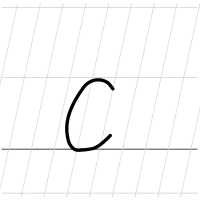 Litera Cc scrisă cu fontul „School Script Dashed”.