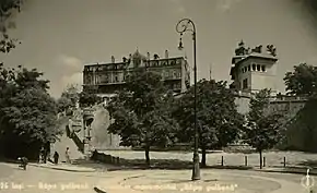 ![]() Căminul Cultural Creștin înainte de 1940. Căminul Cultural Creștin este clădirea din dreapta, văzută din profil; în centrul imaginii și spre stânga se observă Hotelul Bejan, distrus de cutremurul din 1940. | |
