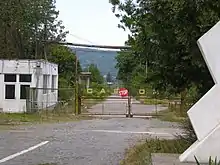 ![]() Combinatul văzut parțial dintr-o instalație, în planul depărtat tabăra (colonia) muncitorilor și un fragment dintr-un fost sat. În ultimul plan, Onești. | |
