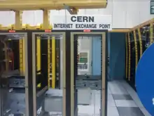 Principalul centru de cercetare de la Meyrin are, de asemenea, un centru mare de informatică dotat cu computere de ultimă generație pentru a interpreta digital datele obținute experimental. Datorită faptului că rezultatele cercetărilor trebuie făcute publice tuturor cercetătorilor din lume, centrul de computere de la CERN găzduiește un Internet Exchange denumit CIXP (CERN Internet Exchange Point), care se interconectează cu alte Internet Exchange-uri și furnizori de servicii internet din Europa. CERN este cunoscut de altfel ca locul unde a fost creat web-ul. Aici există primul server din lume, un computer care avea lipit pe el un bilet: "This machine is a server! Do not power down!" ("Acest aparat este un server! Nu îl opriți!")[9]