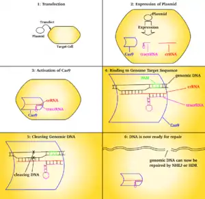 Enzimele Cas9 împreună cu secvențele CRISPR stau la baza unei tehnologii cunoscute sub numele de CRISPR-Cas9 care schimbă în mod eficient și specific genele din interiorul organismelor.[2] Acest proces de editare are o mare varietate de aplicații, inclusiv cercetarea biologică de bază, dezvoltarea produselor biotehnologice și tratamentul bolilor.[3][4]