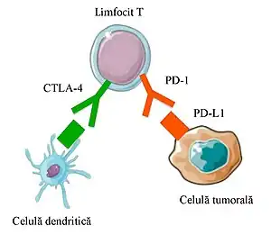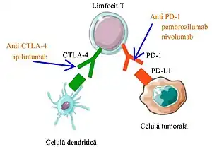 CTLA-4 (acronim pentru Cytotoxic T-Lymphocyte-Associated protein-4 = proteina 4 asociată limfocitelor T citotoxice sau Cytotoxic T Lymphocyte–Associated antigen 4 = antigenul 4 asociat limfocitelor T citotoxice), numit și antigenul-4 al limfocitelor T citotoxice este o moleculă exprimată pe suprafața limfocitelor T auxiliare "helper" care acționează ca un inhibitor puternic al activării lor. Limfocitele T auxiliare intervin în răspunsul imun ca urmare a prezenței celulelor infectate sau a celulelor tumorale. Acestea sunt activate atunci când receptorii lor TCR (T cell receptor), recunosc peptidele derivate din proteinele virale sau tumorale asociate cu moleculele HLA ale complexului major al histocompatibilității de pe suprafața celulelor prezentatoare de antigen. Această activare este împiedicată de CTLA-4. Limfocitele T auxiliare sunt stimulate atunci când CTLA-4 este inhibat. De aici a apărut ideea utilizării în doze terapeutice a unui anticorp monoclonal specific care inhibă CTLA-4 și prin urmare stimulează răspunsul antiviral sau antitumoral al limfocitelor T. Un astfel de anticorp, ipilimumabul, s-a dovedit a fi eficient în tratamentul melanomului metastatic.[4] Ipilimumabul (sub denumirea comercială Yervoy) este autorizat în România pentru tratamentul melanomului în stadii avansate (nerezecabil sau metastatic).[5] Pentru studiul antigenului 4 de pe limfocitele T citotoxice (CTLA-4) care frânează răspunsul imun antitumoral al acestor limfocite și pentru dezvoltarea unui anticorp monoclonal care inhibă CTLA-4 și astfel permite limfocitelor T să atace celulele canceroase lui James P. Allison i s-a acordat Premiul Nobel pentru Medicină în 2018.[6]
