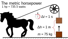 ![]() Ilustrare a definiției unității de măsură „cal putere” | |