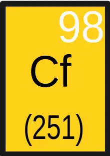 | Masă atomică | 251 u | ||||||||||||||||||||||||||||||||||||||||||||||||||||||||||||||||||||||||||||||||||||||||||||||||||||||||||||||||||||||||||||||||||||||||||||||||||||||||||||||