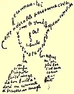 În literatura universală, celebre sunt caligramele poetului francez, Guillaume Apollinaire, unde se renunță la linia de contur a obiectului-formă (în care se toarnă conținutul-text), linia / liniile desenului fiind realizate chiar din rândurile / versurile textului dispuse lizibil, în formă de cal, de ochelari etc. (supra).