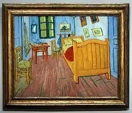 Camera din Arles reprezintă dormitorul pictorului în timpul șederii sale în orașul francez Arles, un subiect supra care a pictat trei picturi aproape identice. Primul, păstrat în Muzeul Van Gogh din Amsterdam, a fost pictat în octombrie 1888 și sa deteriorat într-un potop care a avut loc in timpul spitalizarii pictorului. Aproximativ un an mai târziu, el a inceput sa picteze două tablouri aproape similare: unul, de aceleasi dimensiuni, este conservate astazi la Institutul de Artă din Chicago; de altă parte, cea din Muzeul Orsay, este de dimensiuni mai mici.
