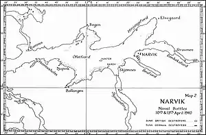După scufundarea vaselor apărării de coastă Eidsvold și Norge, comandantul garnizoanei Narvik, Konrad Sundlo, a capitulat cu forțele terestre din subordine fără luptă.[21]