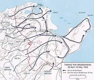 Atacul final pentru cucerirea Tunisiei a început pe 19 aprilie. Până în acel moment, forțele germano-italiene au fost obligate să se poziționeze pe o linie defensivă pe coasta de nord-est a Tunisiei, în încercarea de a-și apăra porturile și căile maritime de aprovizionare și retragere. Forțele aliate au fost reorganizate și reamplasate. Americanii au fost transferați în nord pentru atacul pe direcția Bizerta. Britanicii urmau să atace în centru spre Tunis. Francezii erau plasați în sectorul Pont du Fahs. Britanicii au încercat câteva atacuri la nord de Enfidaville, pe malul Mediteranei, dar au descoperit rapid că zona era prea puternic apărată. Atacanții britanici au fost transferați în centru, pentru asaltul final.[24] Un corespondent de război britanic remarca că, în faza finală a luptelor din Tunisia „… s-a remarcat că italienii luptau în mod special mai bine, depășindu-i pe germanii aflați alături de ei”.[25]
