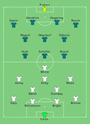 - „Tactical Line-ups – England v Germany” (PDF). UEFA.com. Union of European Football Associations.