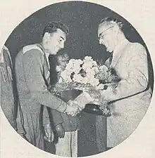 | 21.06.1955 | 3 - 2 | 15-3 | 15-12 | 6-15 | 7-15 | 15-12 | 58 - 57 | ||