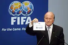 Totuși, Columbia și-a retras oficial candidatura în aprilie 2007, lăsând Brazilia ca singura candidată.[13] Pe 30 octombrie 2007, FIFA a confirmat oficial că Brazilia va găzdui evenimentul.[14]