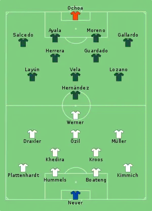 4. „Tactical Line-up – Group F – Germany-Mexico” (PDF). FIFA.com. Fédération Internationale de Football Association. . Accesat în .