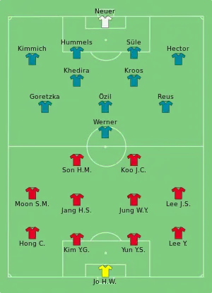 16. „Tactical Line-up – Group F – Korea Republic v Germany” (PDF). FIFA.com. Fédération Internationale de Football Association. . Accesat în .