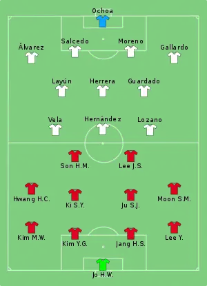 11. „Tactical Line-up – Group F – Korea Republic-Mexico” (PDF). FIFA.com. Fédération Internationale de Football Association. . Accesat în .