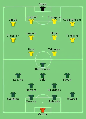 18. „Tactical Line-up – Group F – Mexico v Sweden” (PDF). FIFA.com. Fédération Internationale de Football Association. . Accesat în .