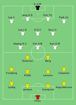 8. „Tactical Line-up – Group F – Sweden-Korea Republic” (PDF). FIFA.com. Fédération Internationale de Football Association. . Accesat în .
