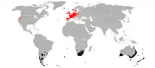 Arealul său autohton se află în emisfera sudică în sudul Americii de Sud, în partea de sud a Africii, în sudul și estul Australiei și pe insulele Atlanticului și Pacificului, cum ar fi Noua Zeelandă, Noua Caledonie și Insulele Sandwich de Sud.