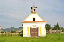 Este situată lângă drumul care duce la Sânsimion, în locul numit Vásárhely (în trad. "locul de târg"). Capela a fost ridicată în secolul al XVI-lea, în stil baroc.