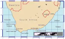 Capul Bunei Speranțe (Africa de Sud) Poziția geografică în Africa de Sud | |