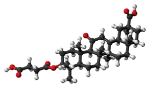 Carbenoxolona este un derivat de acid gliciretinic (extras din rădăcina de lemn dulce), fiind utilizat în tratamentul ulcerelor și inflamațiilor esofagiene, orale și gastrice.[8][9] Când se utilizează sistemic, induce un efect advers sever, și anume un dezechilibru al electroliților.[10]