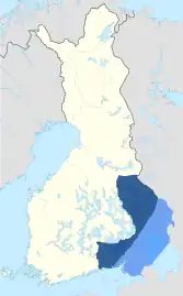 ![]() Carelia Finlandeză istorică (teritoriul din Finlanda contemporană este evidențiat cu albastru închis, teritoriul din Federația Rusă este evidențiat cu albastru deschis). |