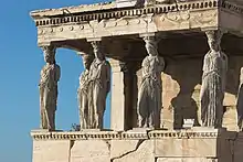 În arhitectură, cariatida are rol de susținere pentru antablamentul unui edificiu sau al unui balcon, înlocuind coloana printr-o statuie reprezentând o femeie care stă în picioare și nu face nici un efort pentru susținere. Poate fi așezată pe un soclu și este legată uneori printr-un capitel de elementul pe care-l susține[3]. Statuile, cu același rol portant, care reprezintă bărbați se numesc atlanți.