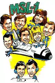 Caricatura unui echipaj al unei navete spațiale a NASA.
