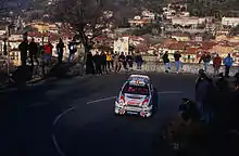 Sainz with a Toyota Corolla WRC at the 1999 Monte Carlo Rally.