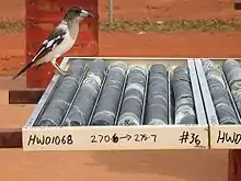 Lădițe din tablă în care sunt depozitate carote extrase în cadrul forajului geologic