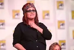 Carrie Frances Fisher[18] (n. , Burbank, California, SUA – d. , Los Angeles, California, SUA) a fost o actriță, scenaristă și producătoare de film americană. A devenit faimoasă pentru rolul prințesei Leia Organa din filmul Războiul stelelor. Alte roluri mai importante sunt cele din comedia romantică Șampon (1975), Frații Blues (1980), Hannah și surorile ei (1986), comedia neagră Vecinii (1989), Când Harry a cunoscut-o pe Sally (1989). Carrie Fisher este și autoarea unui roman autobiografic Postcards from the Edge (Salutări de la Hollywood) și scenariul pentru filmul cu același nume.