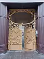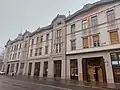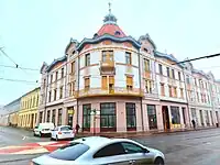 Caracteristica acestei clădiri de la 1902 este “nepotrivirea” dintre structura ei rectangulară și expresia curbilinie a fațadelor. Structura rectangulară este travestită în modalitatea curbilinie prin cornișa sinusoidală din tabla ambutisată și prin linia vălurită a profilului de sub cornișă. Fațada este plană (doar colțul este rotunjit și se termină cu un turn) cu ferestre dreptunghiulare, panouri trapezoidale cu reliefuri. Ferestrele din timpanul aticului au forma de rinichi. Feroneria de la balcoane și portalul de acces sunt decorate cu elemente vegetale.