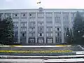 Concepută de la început ca edificiu cu profil administrativ, această clădire este o construcție din beton armat cu 6 etaje, fețuită cu plăci din cotileț alb, în plan având forma literei П (adică litera P în alfabetul chirilic). Ea a fost executată în forme moderne de arhitectură, expresivitatea sa arhitecturală datorându-se ritmului vertical încordat al pilaștrilor-piloni, ce încadrează spațiile mari sticluite ale ferestrelor.