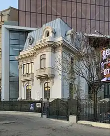 Casa Nanu-Muscel în stânga, și Casa Sabba Ștefănescu în dreapta, în aprilie 2015