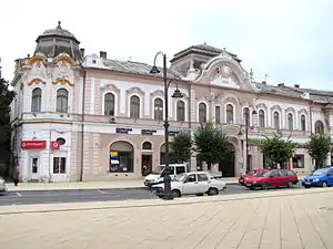 Clădirea din Piața Republicii nr.7, semnalată din anii 1880-1897, cu parter din piatră, a fost reconstruită cu etaj și mansardă în stil Secession (Arta 1900), înainte de anul 1910.