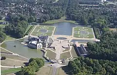 Legătura moșiei cu familia Montmorency a început în 1484. Primul conac (nu mai există, acum înlocuit de Grand Château) a fost construit, între 1528 și 1531, pentru Anne de Montmorency de Pierre Chambiges. Pentru el a fost construit și Petit Château, în jurul anului 1560, probabil de Jean Bullant. În 1632, după moartea lui Henric al II-lea de Montmorency, a trecut la nepotul său, Grand Condé, care a moștenit-o prin mama sa, Charlotte Marguerite de Montmorency.