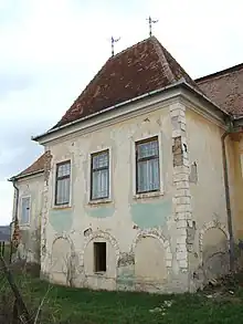 Ansamblul, care după elementele stilului baroc pare să fi fost construit în secolul al XVIII-lea, era înconjurat de un parc mare. Clădirea principală, de plan pătratic, este însoțită de mai multe construcții de diferite dimensiuni și de diferite planuri. Casa de oaspeți, de mari dimensiuni, avea la parter o bucătărie și alte spații gospodărești, iar la etaj erau camerele de oaspeți cu ieșire la o prispă acoperită, cu arcade.