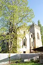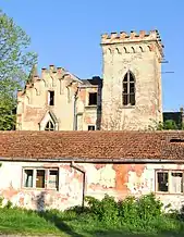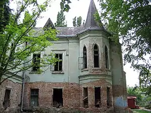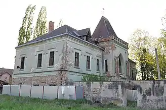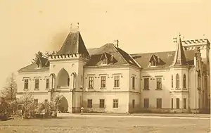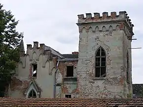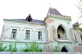 Castelul a fost construit, pe două nivele, în jurul anului 1872. Are forma în plan alungită, cu fronton zimțat la fațada vestică, turn de colț impozant, cu forma în plan dreptunghiulară, cu creneluri, și turnuleț octogonal în partea de est. Fațada principală este accentuată de un rezalit central, de forma unui bastion.
