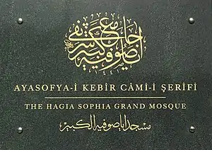 Hagia Sofia (din greacă de la Αγια Σοφια, Aghia Sofia, „Sfânta Înțelepciune”), cunoscută oficial ca Marea Moschee „Ayasofya” (în limba turcă Ayasofya-i Kebir Camii Șerifi) este o moschee din Istanbul, Turcia. Lăcașul a fost la origine o biserică construită din ordinul împăratului Iustinian I (527-565) și a servit drept catedrală a Patriarhiei Ecumenice de Constantinopol până în 1453 când a fost transformată în moschee. În anul 1935 regimul secular Atatürk a transformat edificiul în muzeu. Ca un monument de mare valoare istorică și arhitectonică, Hagia Sophia a fost inclusă pe lista monumentelor patrimoniului mondial UNESCO în 1985. Statutul clădirii a stârnit ulterior discuții, iar în iulie 2020 Consiliul de Stat al Turciei a decis că transformarea în muzeu ar fi fost ilegală. La scurt timp s-a anunțat că muzeul va fi reconvertit în moschee, stârnind numeroase critici din partea reprezentanților UNESCO, dar și a unor state precum Grecia.[2][3][4][5][6] Prima rugăciune de vineri de după anul 1935 a avut loc în data de 24 iulie 2020, în prezența președintelui Recep Tayyip Erdoğan, alături de numeroși alți participanți. În prezent, Hagia Sofia este o moschee activă.