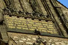 Pe fațada de deasupra intrării principale în catedrală este amplasat un citat în limba latină din Evanghelia după Matei: