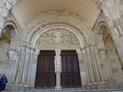 Portalul este elementul cel mai remarcabil al catedralei. A fost realizat, cel puțin Judecata de Apoi, de Gislebert, care semnează cu numele său la picioarele lui Cristos (în latină Gyslebertus hoc fecit)[14][15]